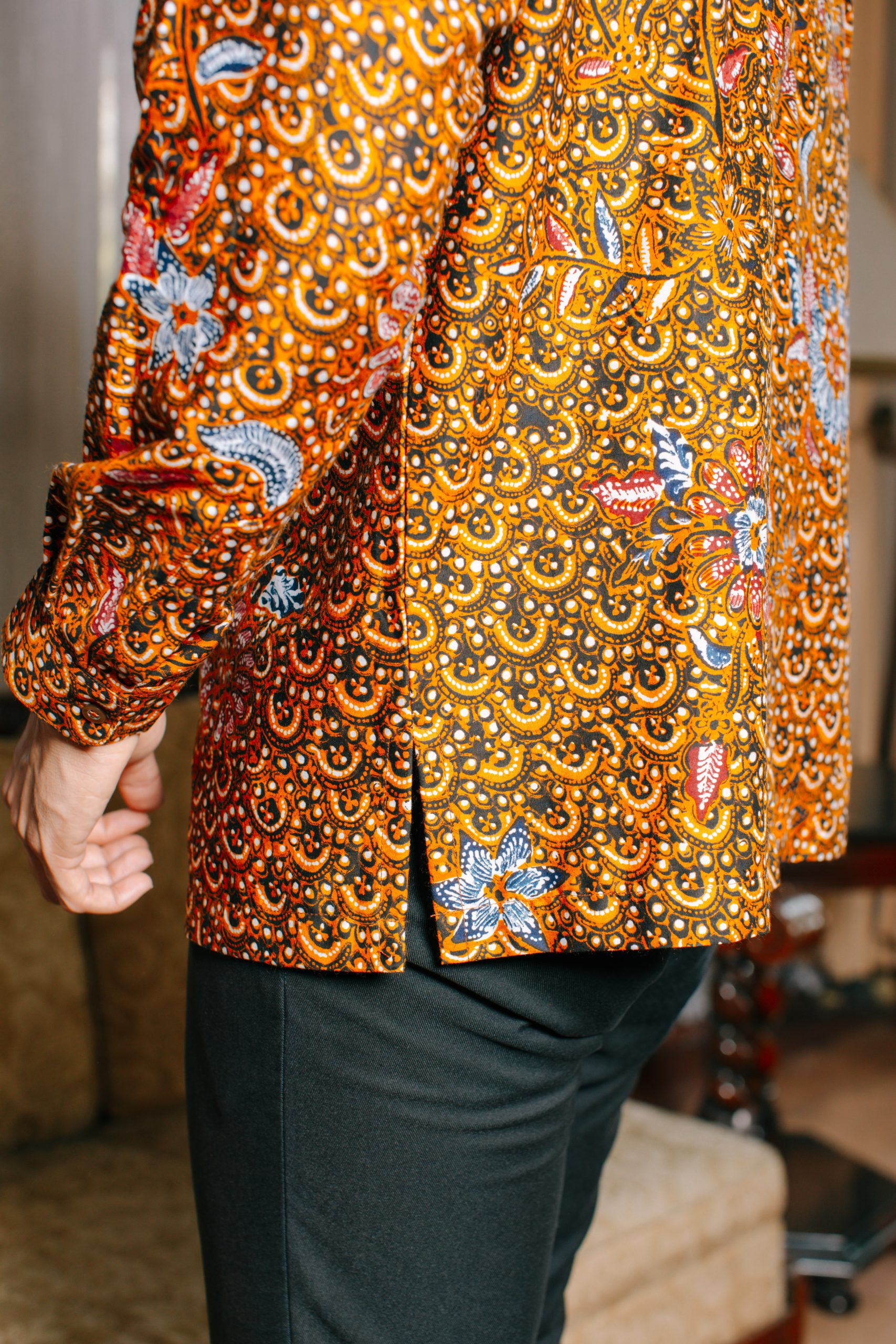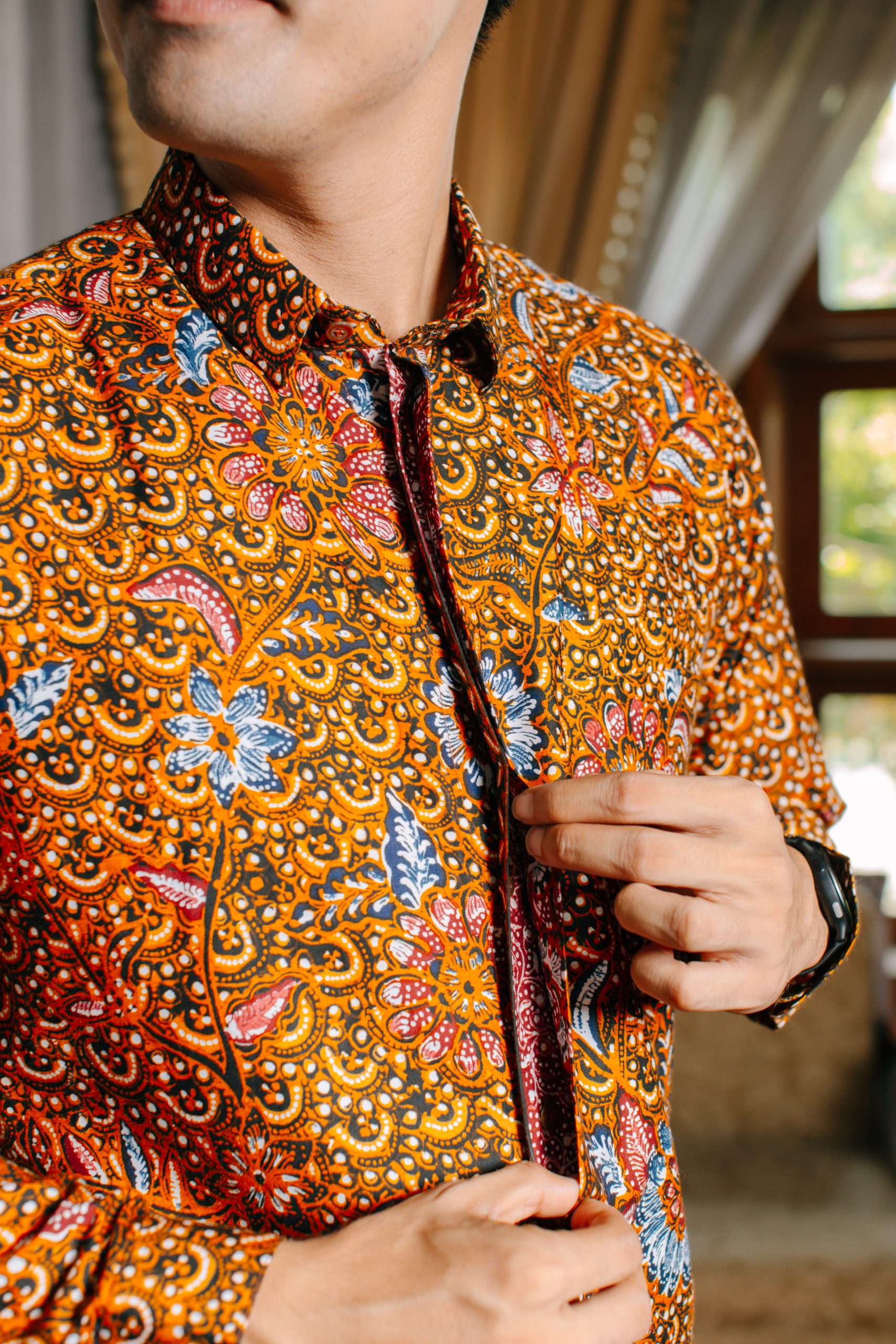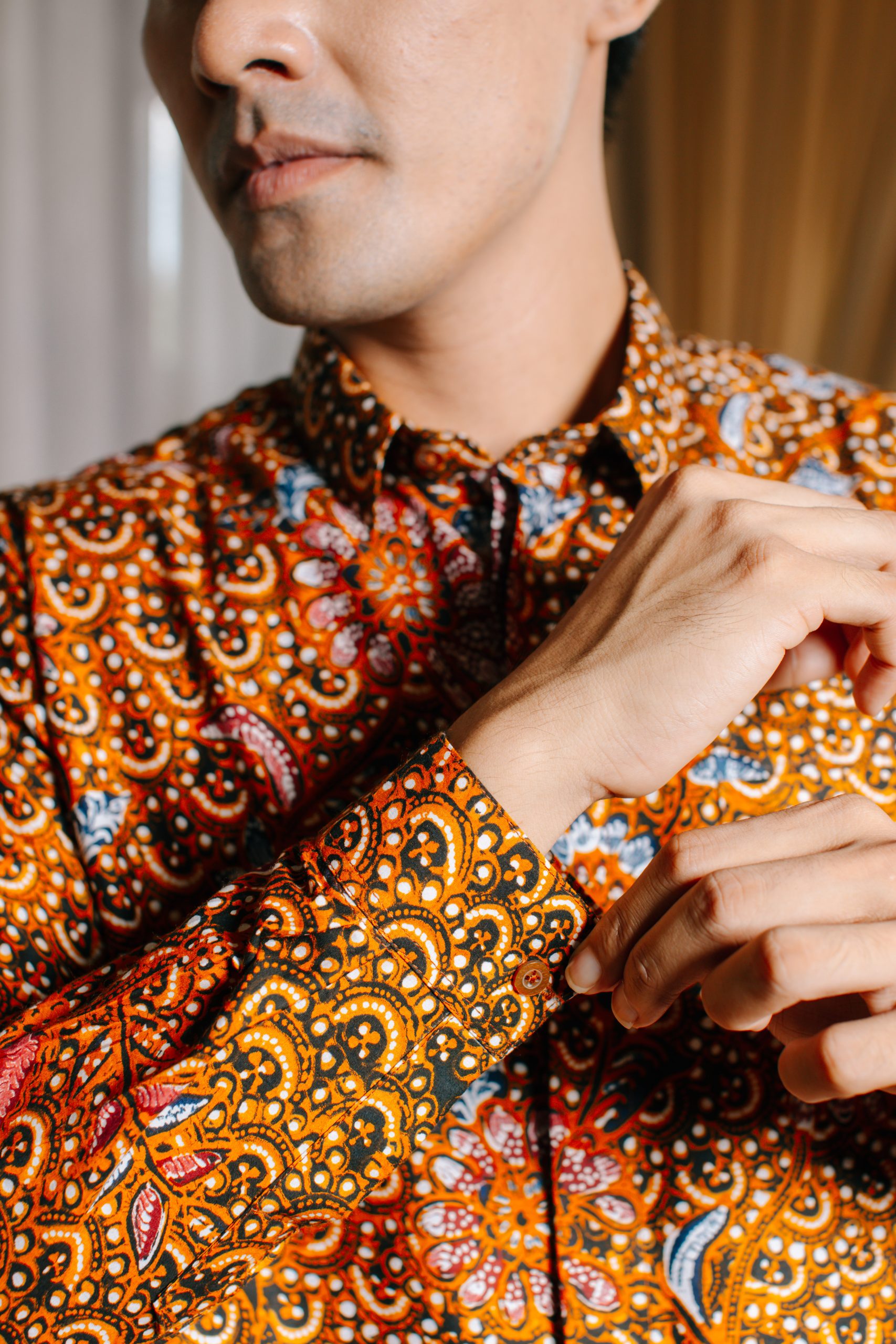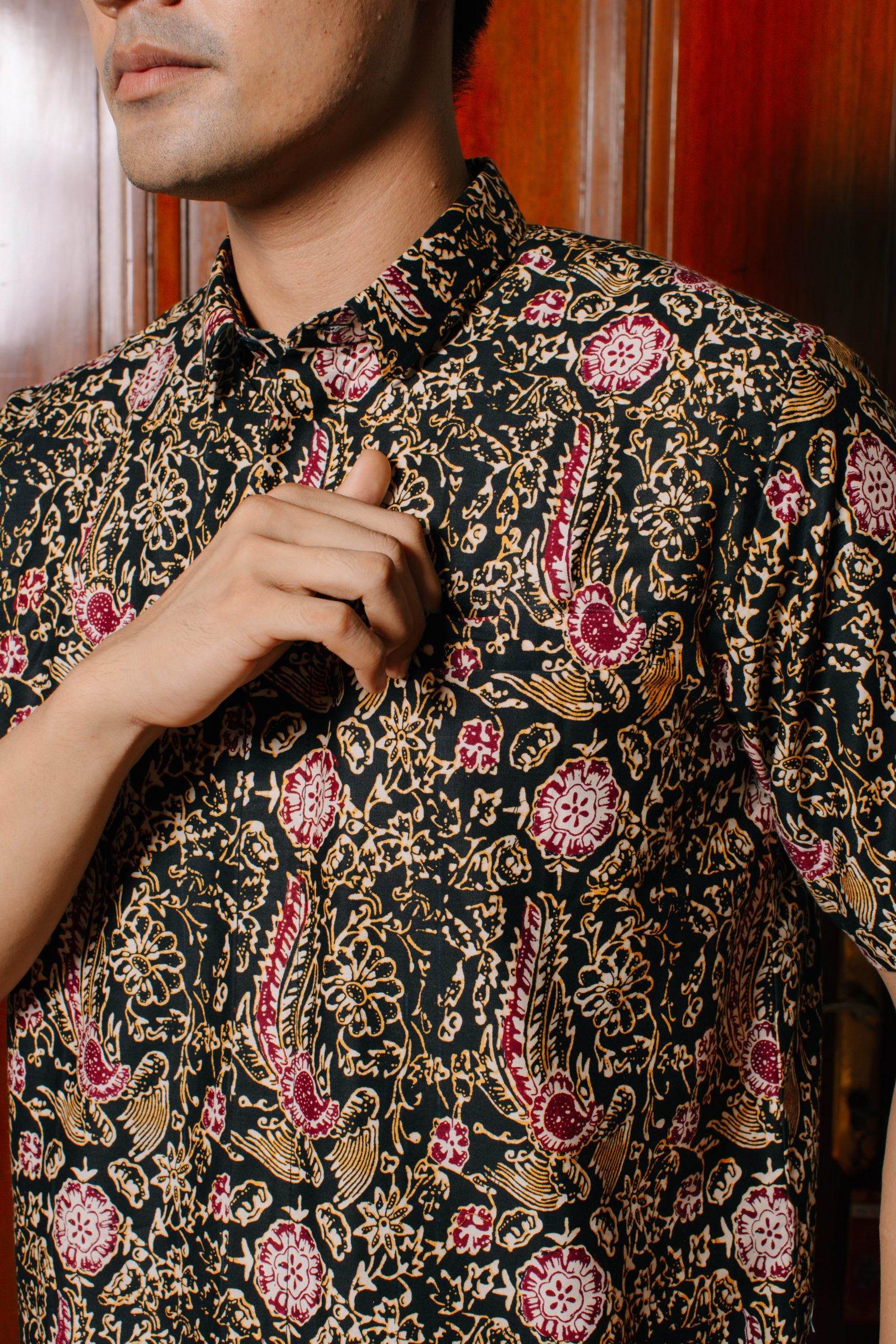 Hem Pria Puspita 2094: adalah pilihan tepat bagi pria modern yang ingin tampil percaya diri dengan sentuhan warisan budaya Indonesia. Mengusung motif floral klasik bernuansa hangat dengan dominasi warna cokelat keemasan dan sentuhan merah yang artistik, kemeja batik lengan panjang ini menghadirkan kesan maskulin, berwibawa, dan timeless. Padukan dengan celana bahan hitam atau cokelat gelap untuk tampilan formal yang sophisticated.