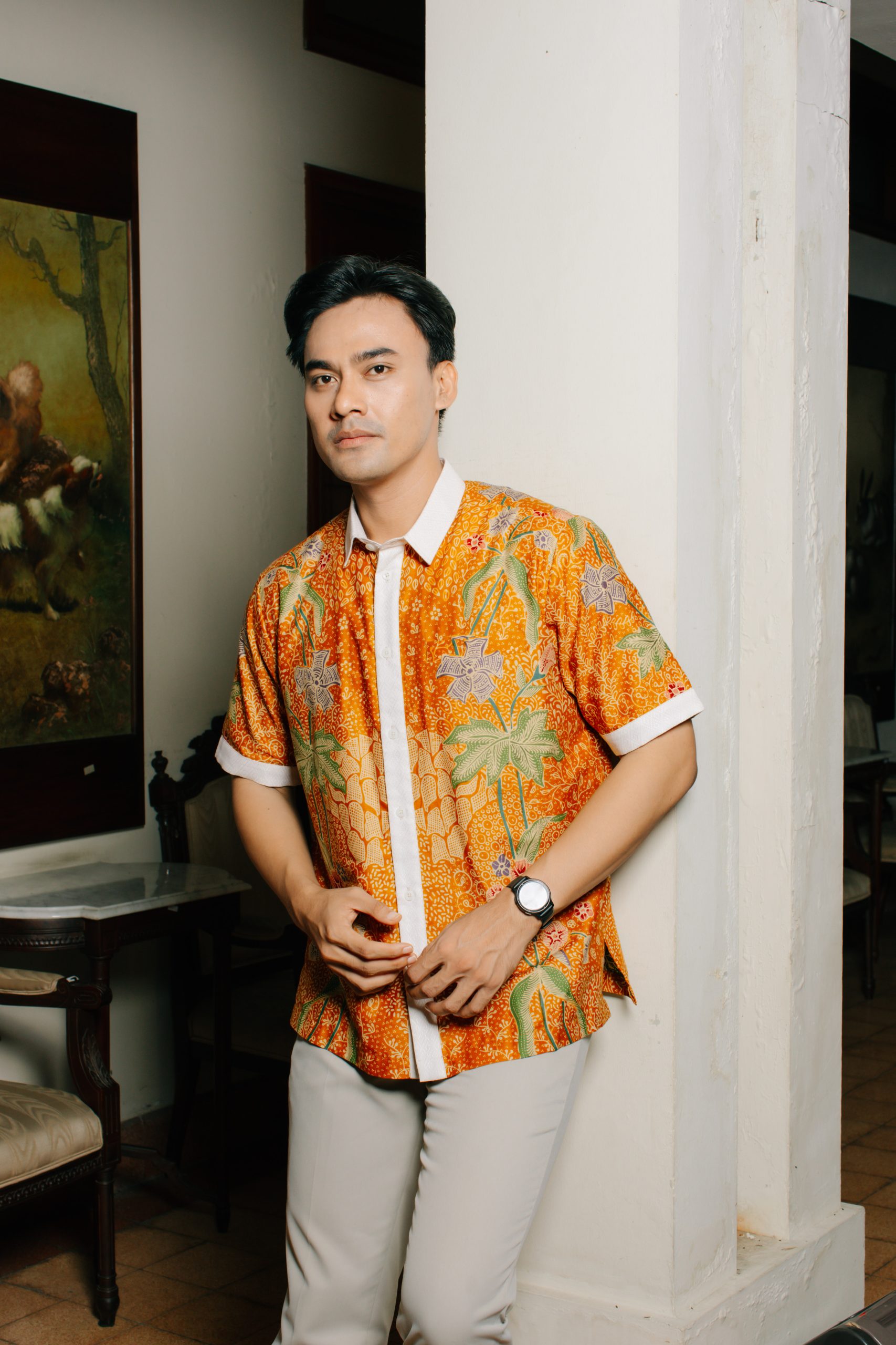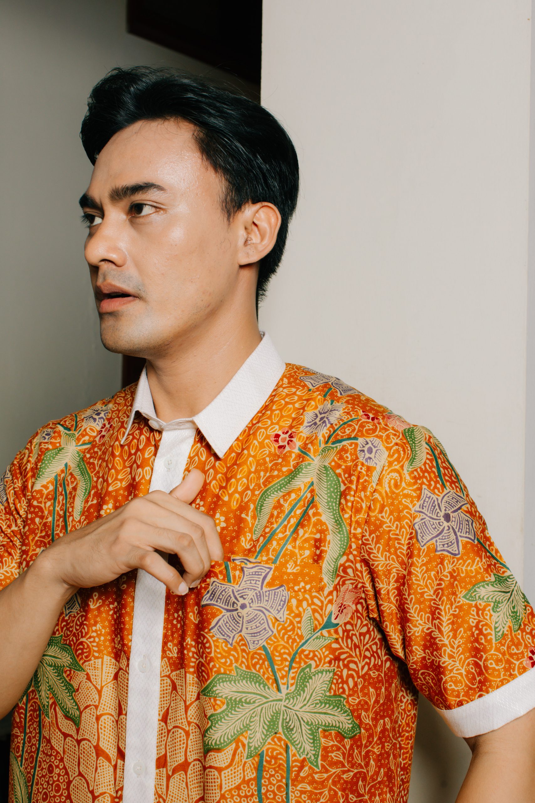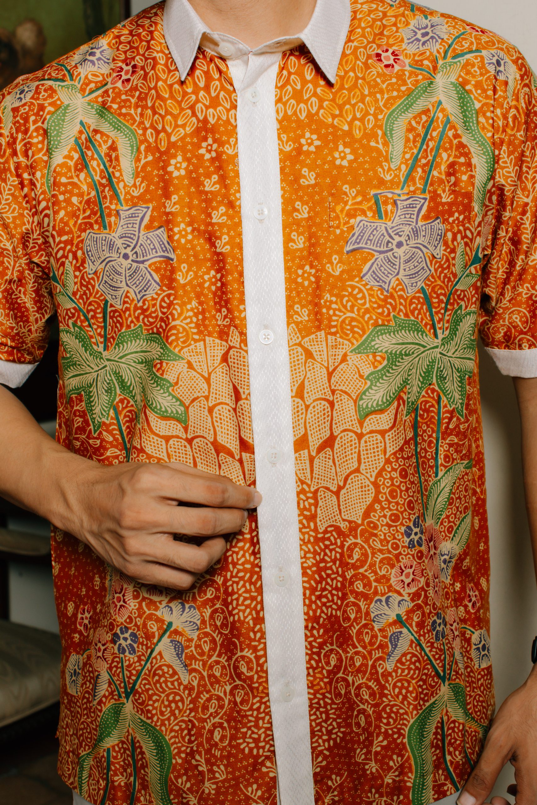Hem Pria Puspita 2095: menghadirkan desain batik pria modern dengan sentuhan motif floral tropikal dan warna cerah elegan. Kemeja batik pria lengan pendek ini dirancang dengan potongan regular fit yang nyaman dan fleksibel untuk aktivitas harian. Kombinasi warna oranye hangat dengan aksen motif floral memberikan tampilan fresh, profesional, dan tetap berkelas.