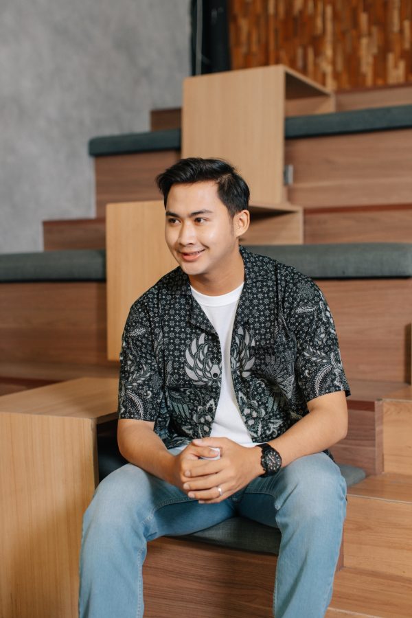 Tegas, maskulin, dan effortless. Harjotirto – Rever Collar Men’s Shirt menghadirkan interpretasi baru kemeja batik pria modern dengan desain rever collar (kerah terbuka) yang clean dan sophisticated. Motif batik klasik bernuansa hitam monokrom memberikan karakter kuat, menjadikannya pilihan tepat untuk pria yang ingin tampil stylish tanpa terlihat berlebihan.